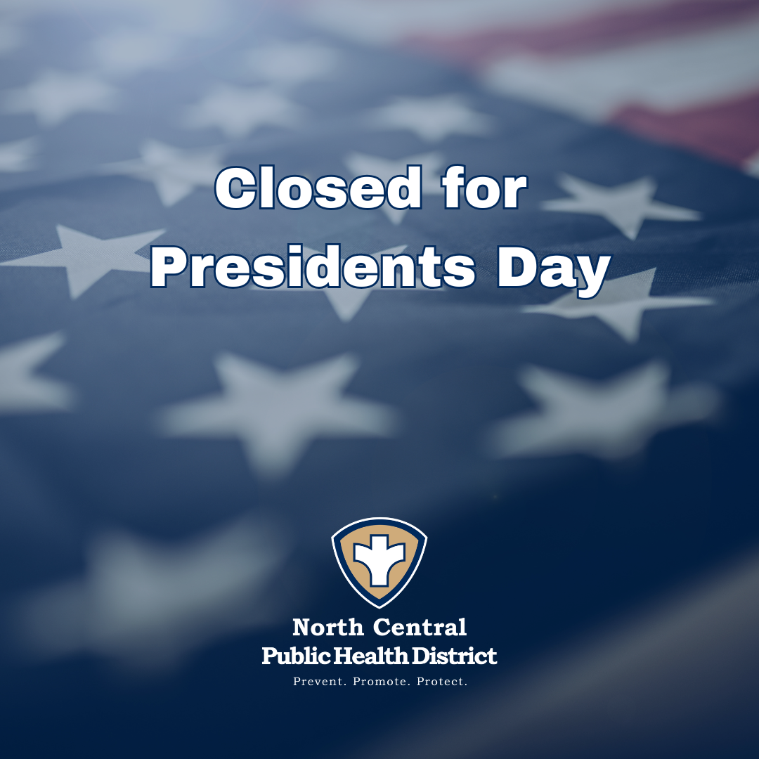 North Central Public Health District (NCPHD) will be closed Monday, Feb. 16, for Presidents Day.
